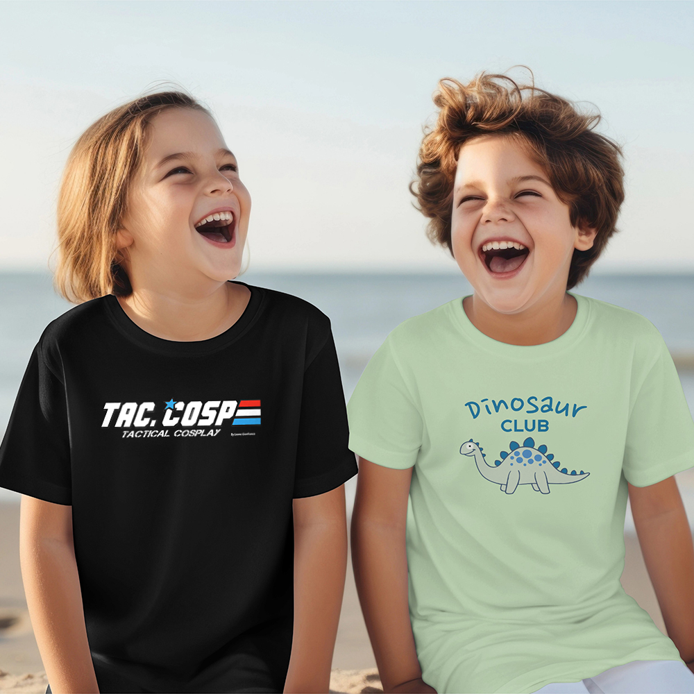 Soft children's t-shirt with no side seams, made of sturdy cotton jersey. 100% ring-spun cotton, simple jersey. Tubular fabric with shoulder to shoulder reinforcement tape. Washable at 30 degrees.